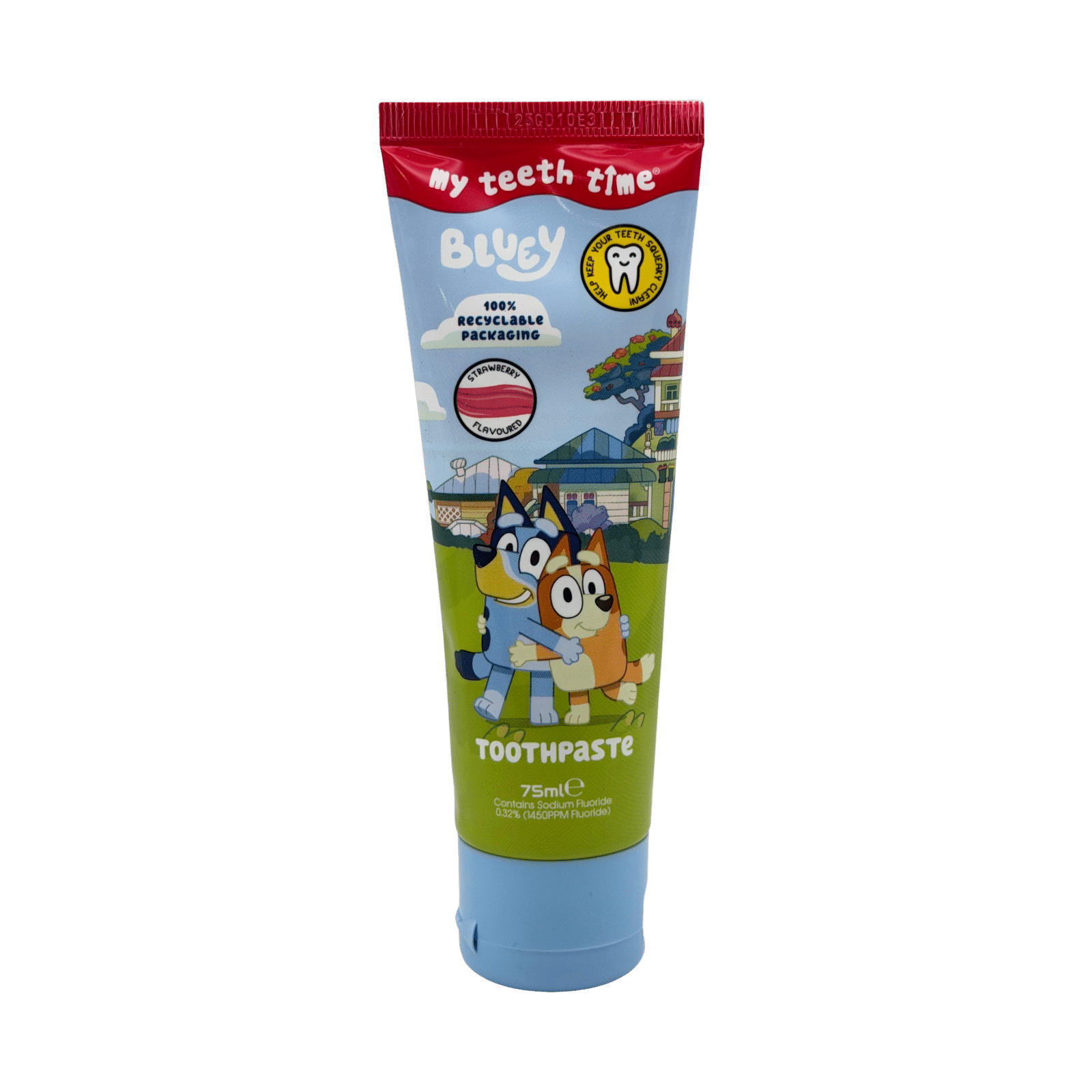 Bluey Children’s Strawberry Toothpaste 75ml is a fluoride toothpaste designed to help children care for their teeth while making brushing more enjoyable. The tasty strawberry flavour and colourful Bluey design encourage regular brushing as part of a healthy daily routine.
