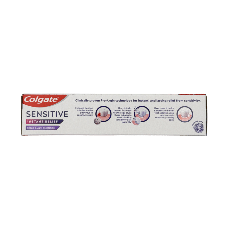 Colgate Sensitive Instant Relief Repair + Multi-Protection Toothpaste 75ml is designed to help relieve tooth sensitivity while supporting overall oral care. It helps protect teeth from everyday triggers while also promoting gum health and fresher breath.