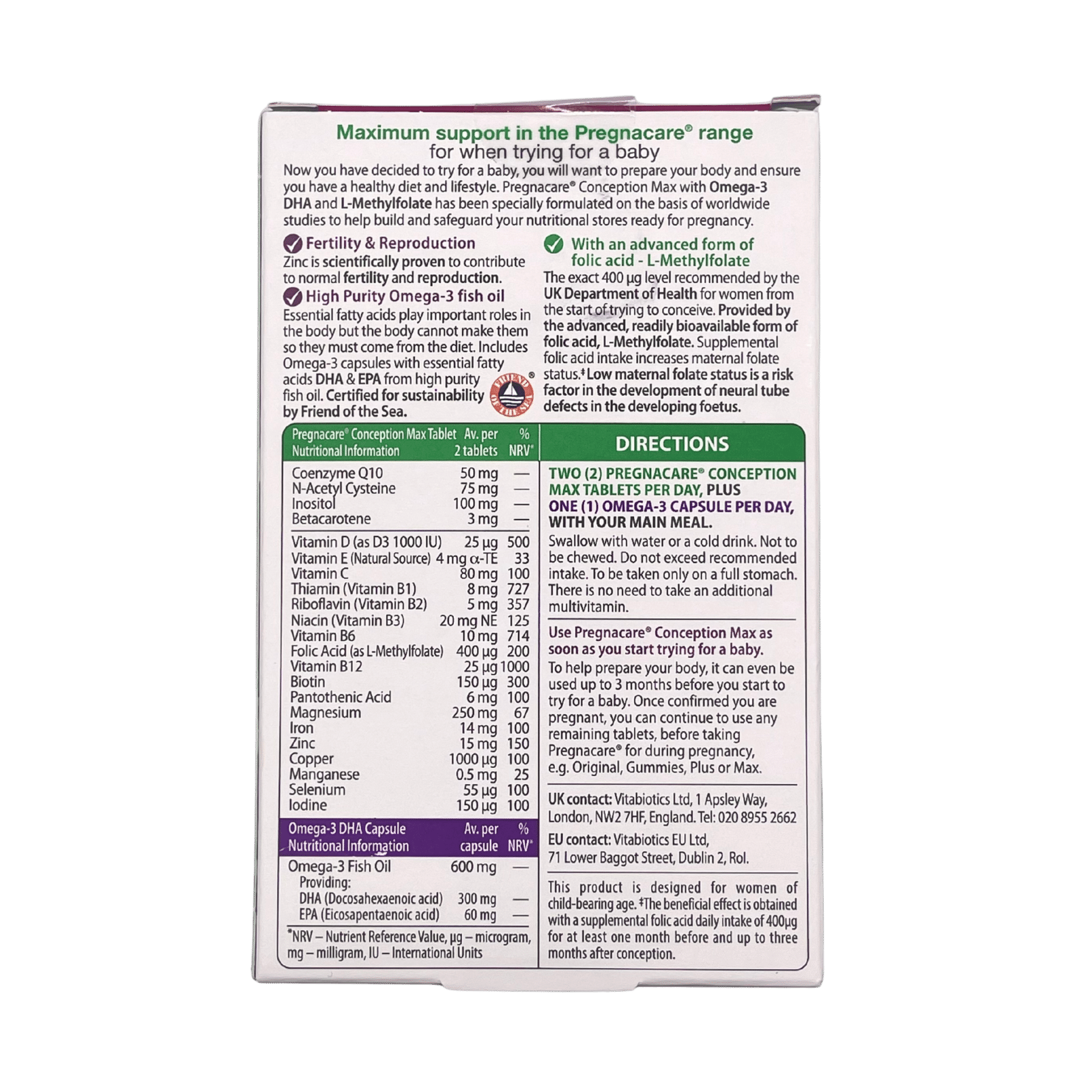 Whether you’re actively trying to conceive or looking to support your body before pregnancy, Vitabiotics Pregnacare Conception Max offers high-level, trusted nutritional support as part of your daily routine.